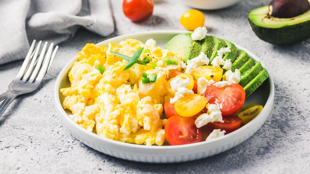 For a light and filling breakfast, serve scrambled eggs with a side of mixed greens and avocado. It’s a quick and healthy meal that provides healthy fats, protein, and essential nutrients.